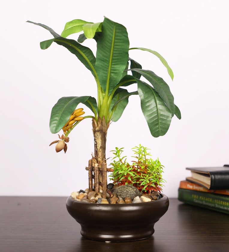 Green Artificial Banana Plant Bonsai with Ceramic Pot