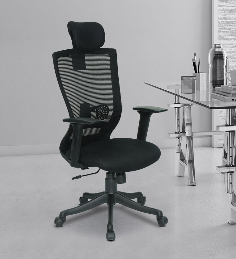Barcelona High Back Ergonomic Chair with Headrest in Black Colour