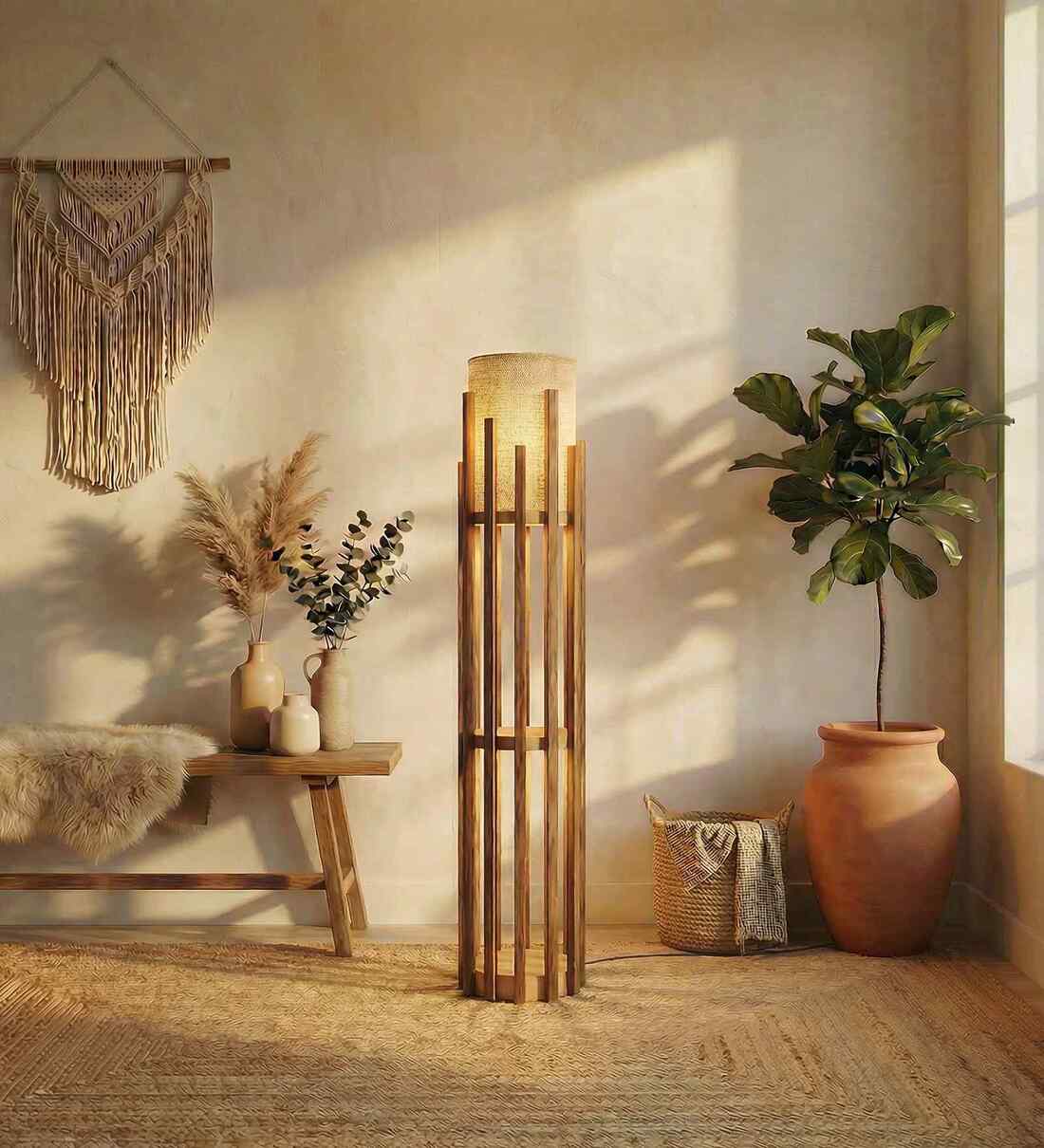 Bastian Wooden Floor Lamp with Jute Shade & Brown Base