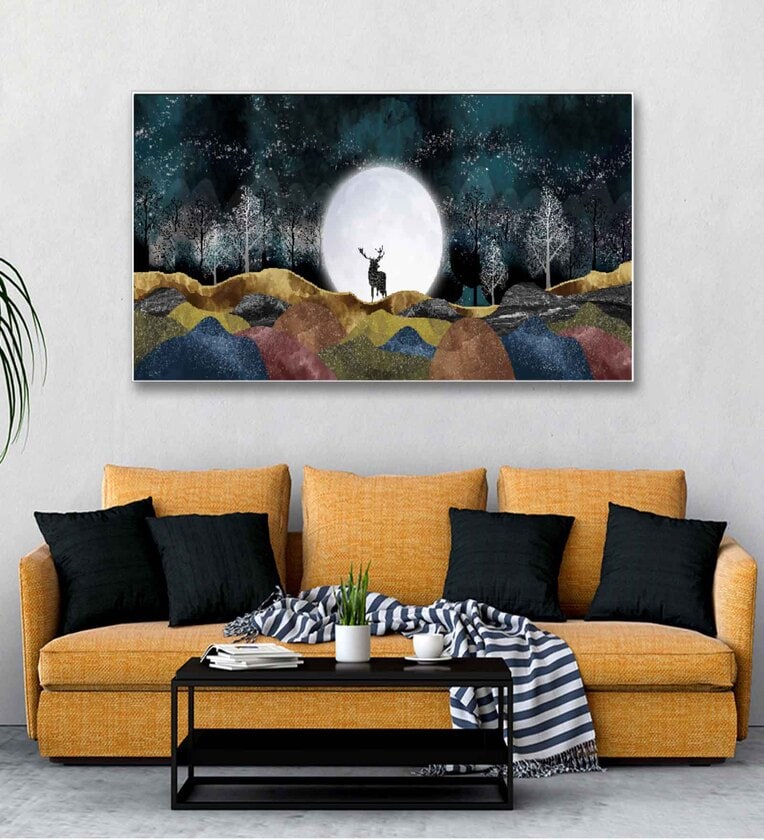 Beautiful Deer In Moonlight Multicolour Canvas Art Print