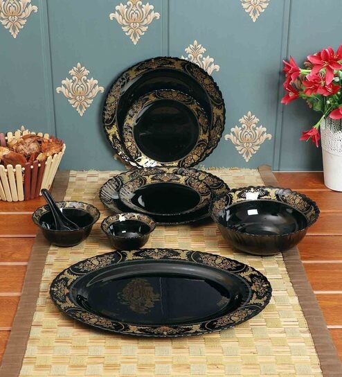 6 Full Plates, 6 Side Plates, 6 Soup Bowls, 6 Dining Bowls, 2 Serving Bowls, 6 Spoons, 1 Platter