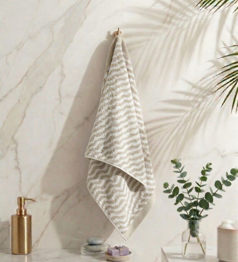 With a 500 GSM fabric, the towel gives you the right balance of absorbency and quick drying. The self-design pattern adds a subtle style, making it a good fit for any bathroom setup.