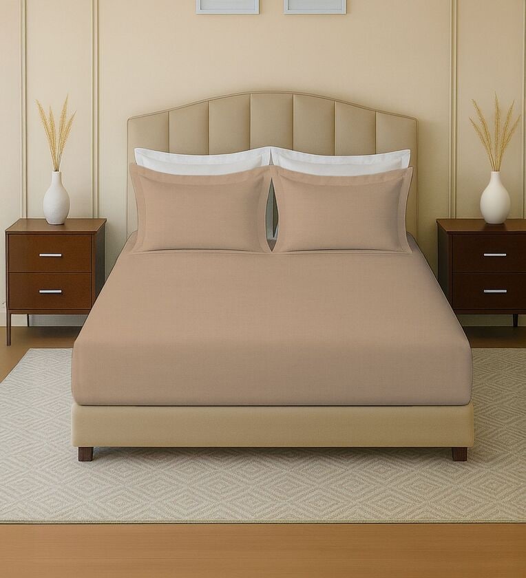 Beige 144 TC Cotton King Sized Double Bedsheet With 2 Pillow Covers