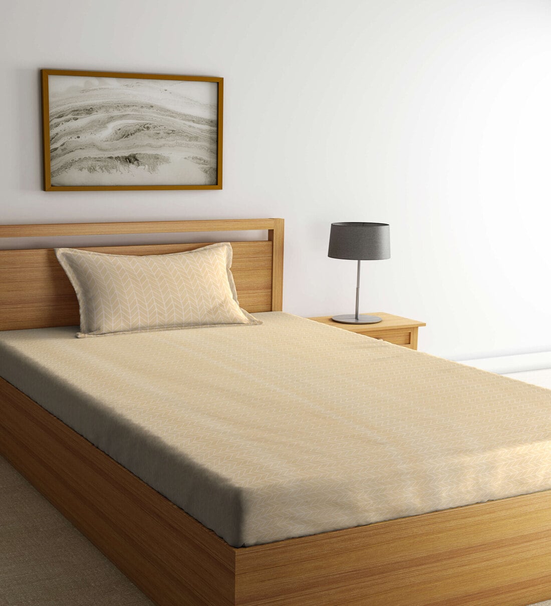 Beige Abstract 300 TC Cotton Blend Single Bedsheet with 1 Pillow Cover