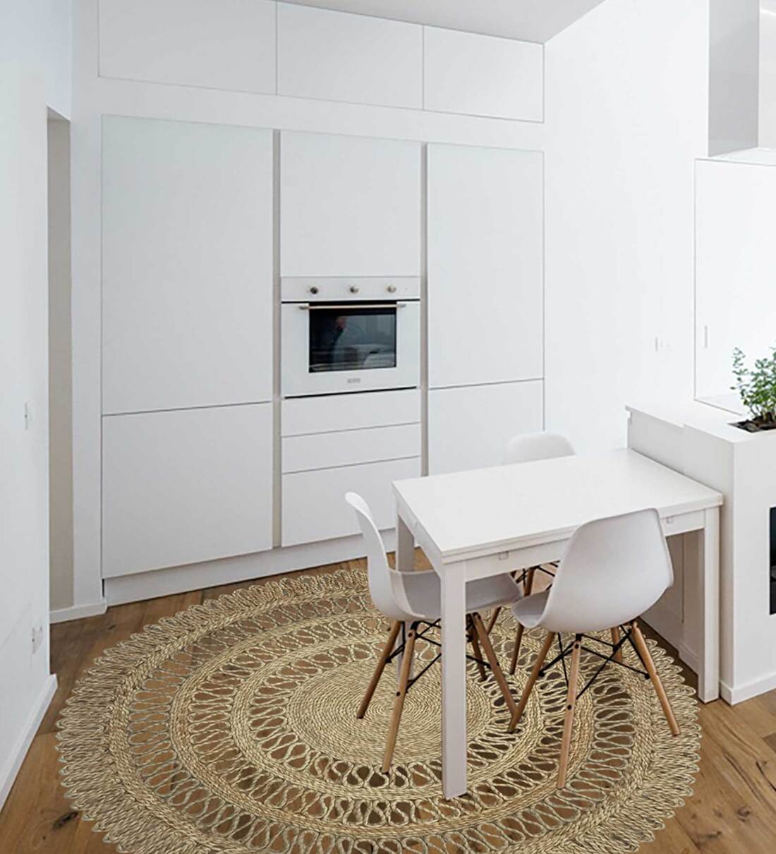 Beige Abstract Jute 3 ft x 3 ft Hand Tufted Round Carpet