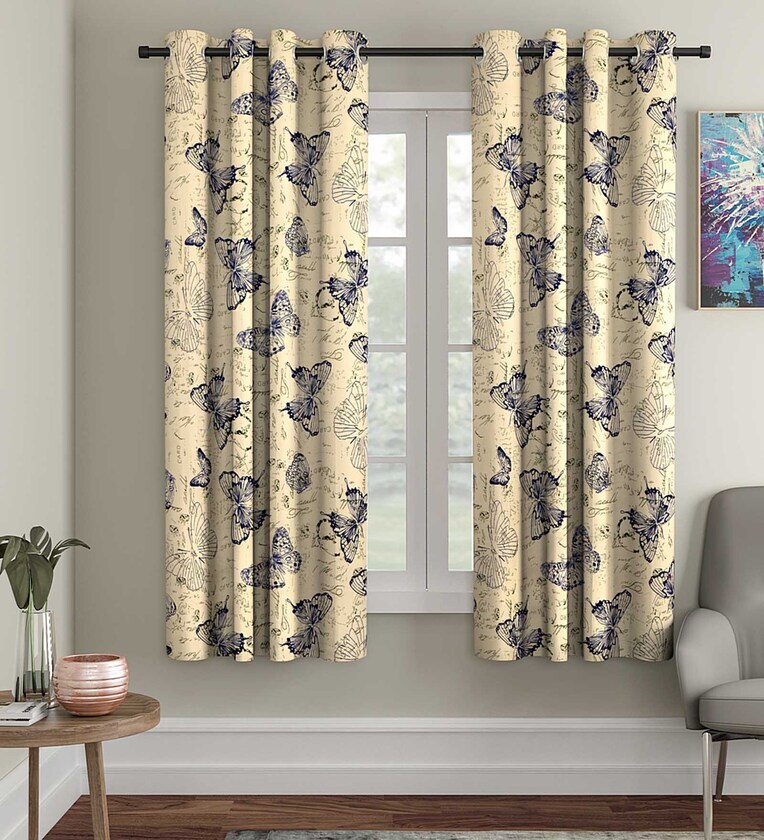 Beige Abstract Polyester 5 Ft Semisheer Eyelet Window Curtains (Set of 2)