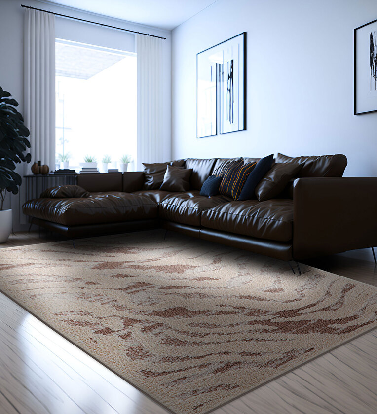 Beige Abstract Polyester 6 ft x 9 ft Machine Made Carpet