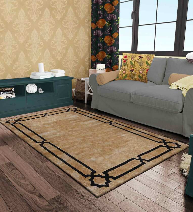 Buy Beige Abstract Viscose 4 ft x 6 ft Hand Tufted Carpet
