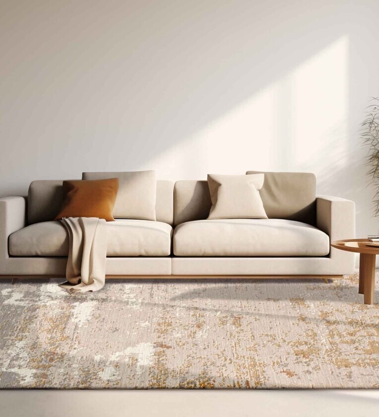 Beige Abstract Wool 4 ft x 6 ft Hand Knotted Carpet