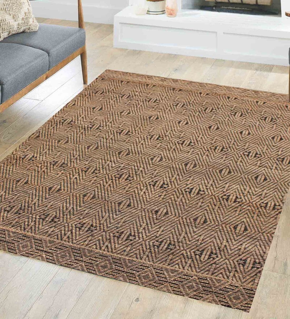 Beige and Black Saransk Geometric Jute 5ft x 8ft Hand Woven Carpet