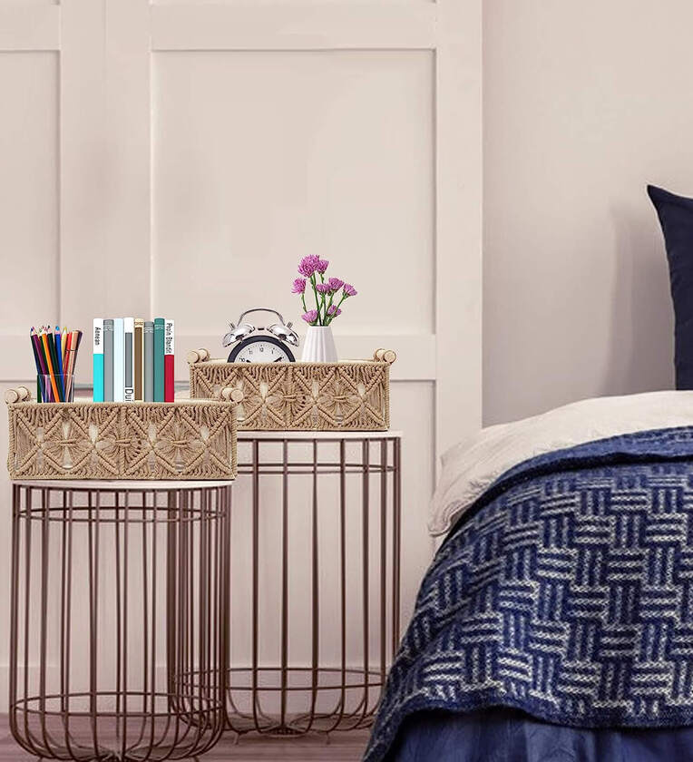 Set of 2 Beige Cotton Rope & Iron Frame Organisers
