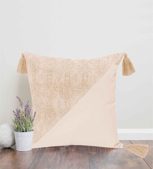 Beige Traditional Cotton 14 x 14 Inches Cushion Cover