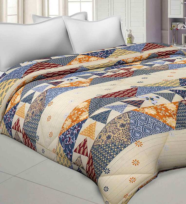 Beige Cotton Abstract 250 GSM Double Bed Comforter