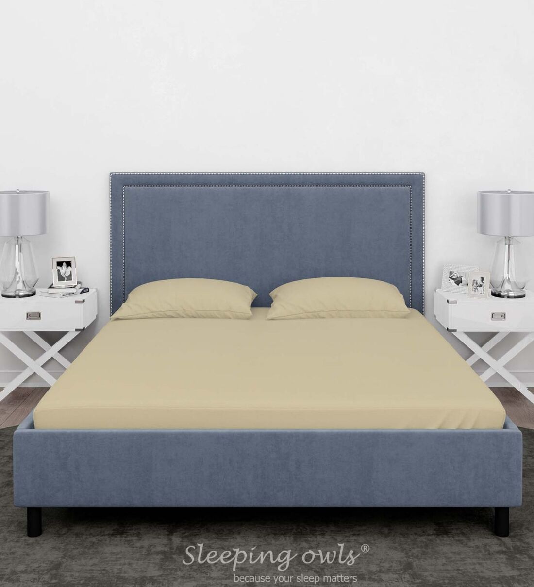 Sleeping Owls 100% Soft Cotton Solids Finest 300TC Plain Super King Bedsheet with 2 Pillow Cover - BEIGE