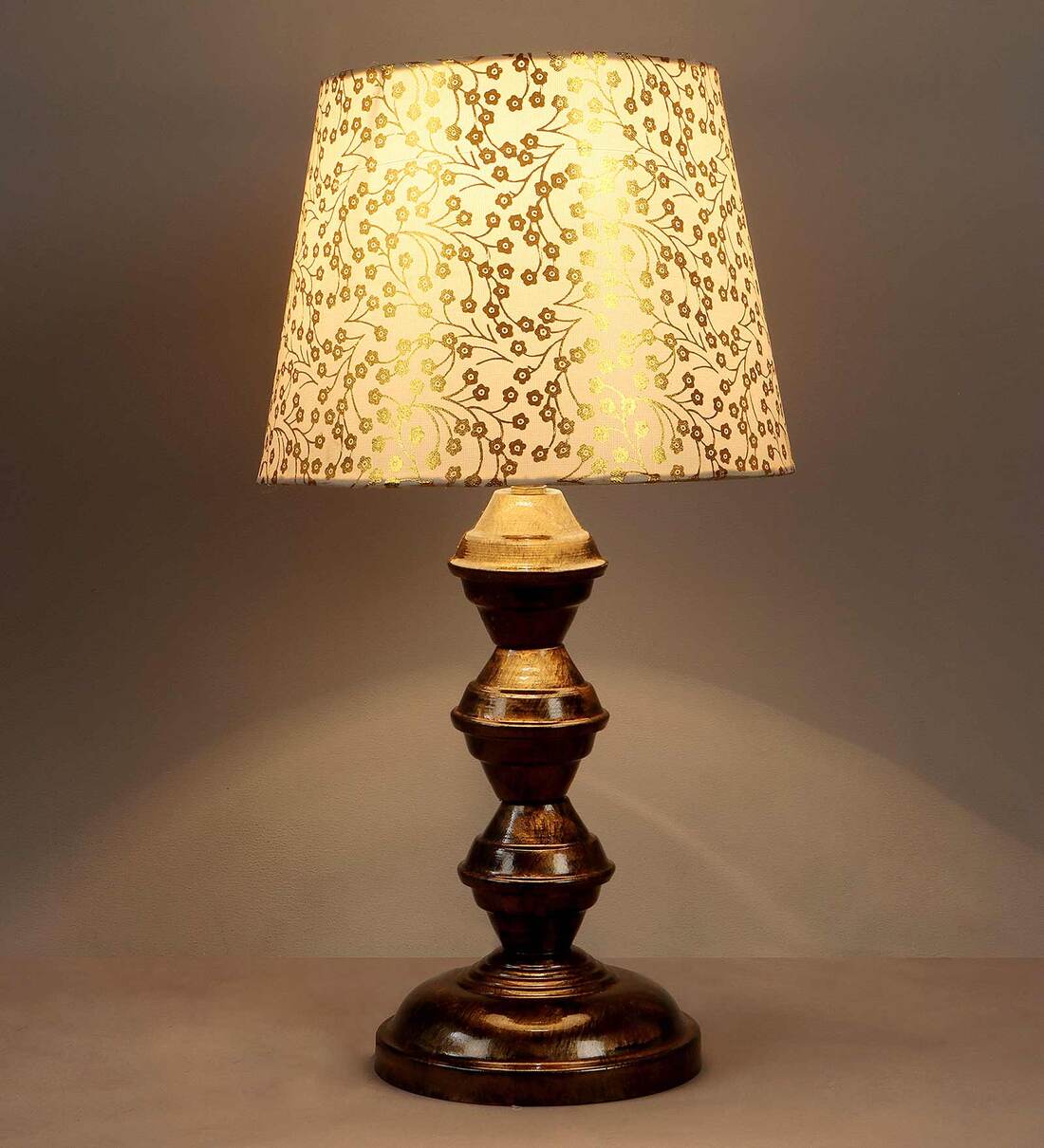 Beige Fabric Shade Table Lamp With Copper Base