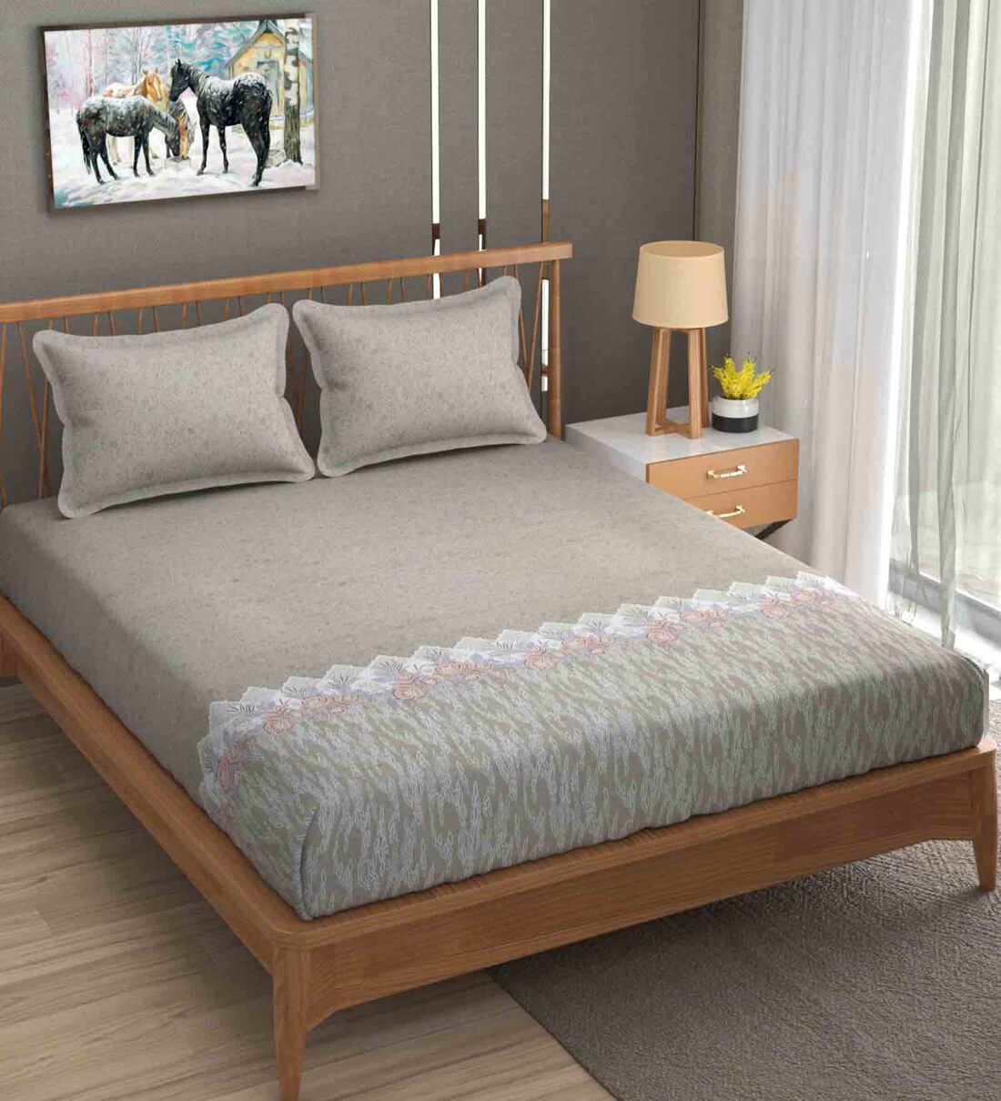 Beige Floral 120TC Cotton Double Bedsheet with 2 Pillow Covers