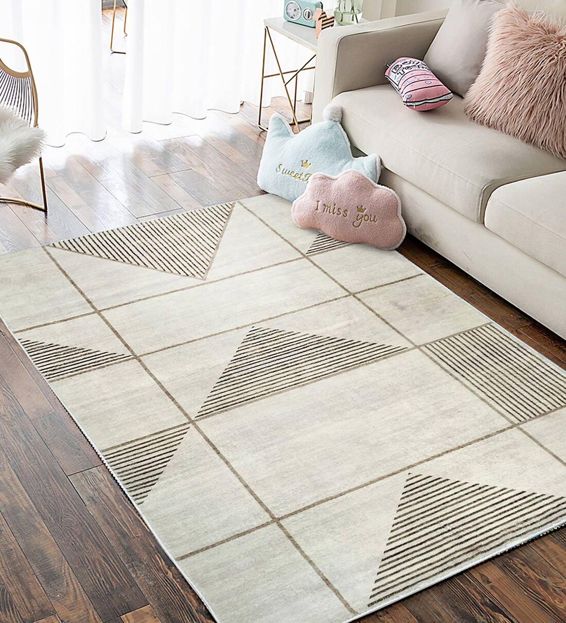 This Ibiza IZ-04 area rug has geometric designs and mellow colours to fill your living room with warmth and style. The floor carpet suits any home space and they are made durable with features like machine washable and materials like microfibre. Buy this rug online or from any leading retail store across India.