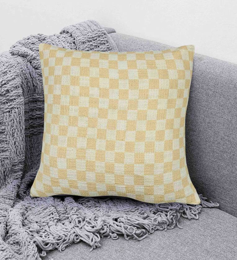 Beige Geometric Cotton 16 x 16 Inches Cushion Cover