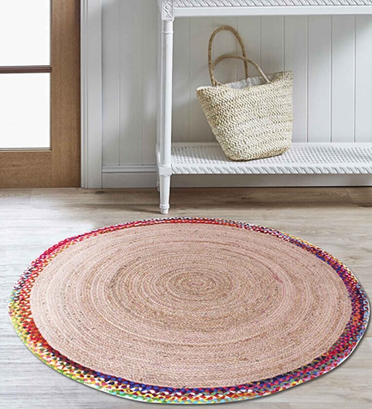 The Afono rug is braided from virgin jute fiber and bordered with colorful recycled fabric to be used as a stylish accent in any part of the house. It's round shape is ideal for study tables, bedsides, hall-ways as well as the home entrance. Jute gives it the ruggedness to bear heavy traffic.