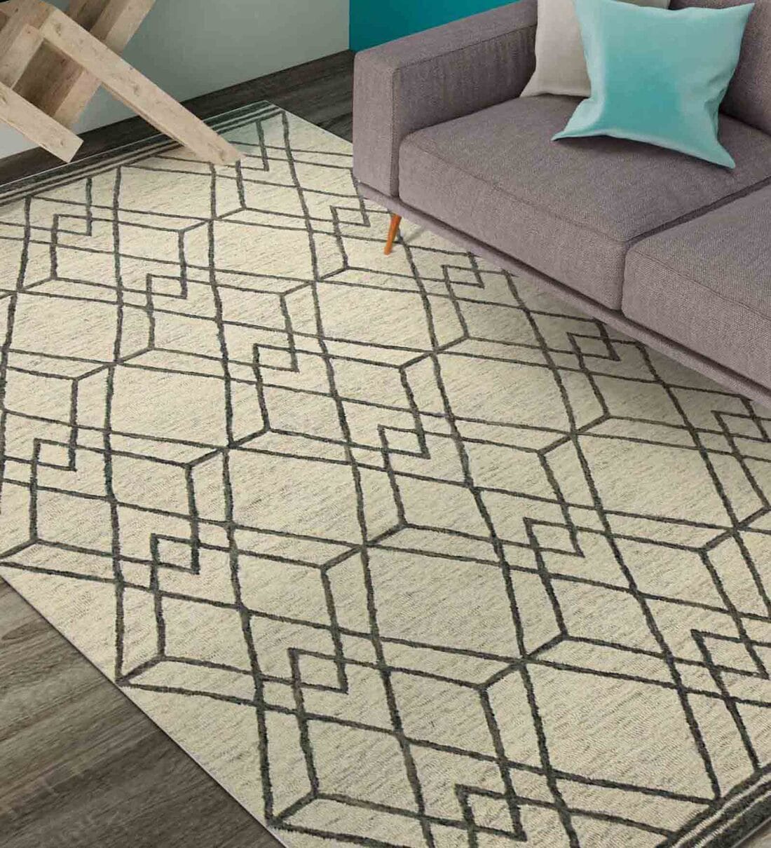 Beige Geometric Wool 8 ft x 10 ft Hand Tufted Carpet