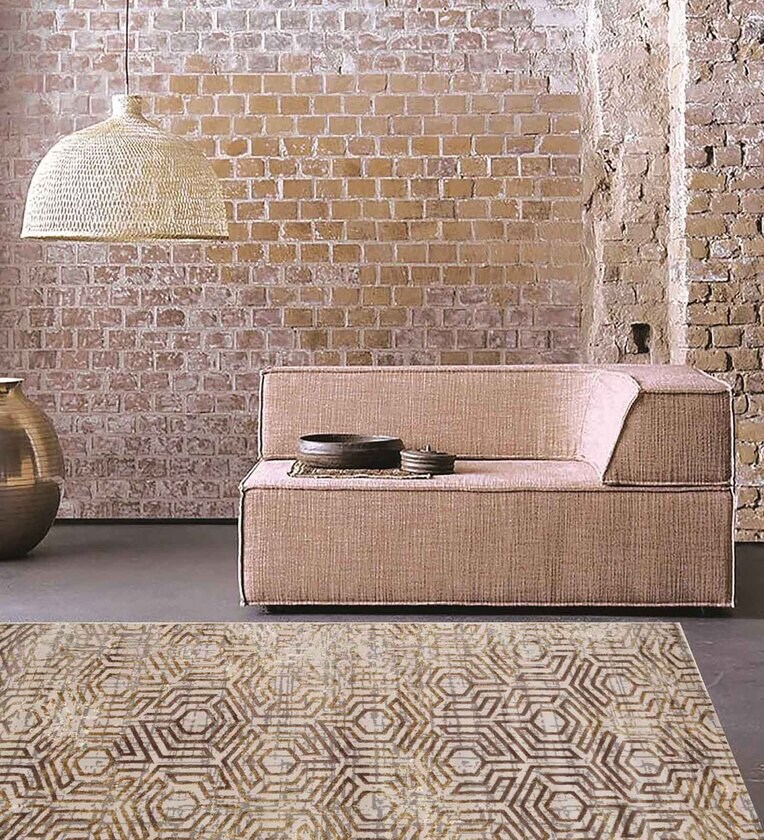 Beige Geometrical Polypropylene 6 ft x 9 ft Machine Made Carpet