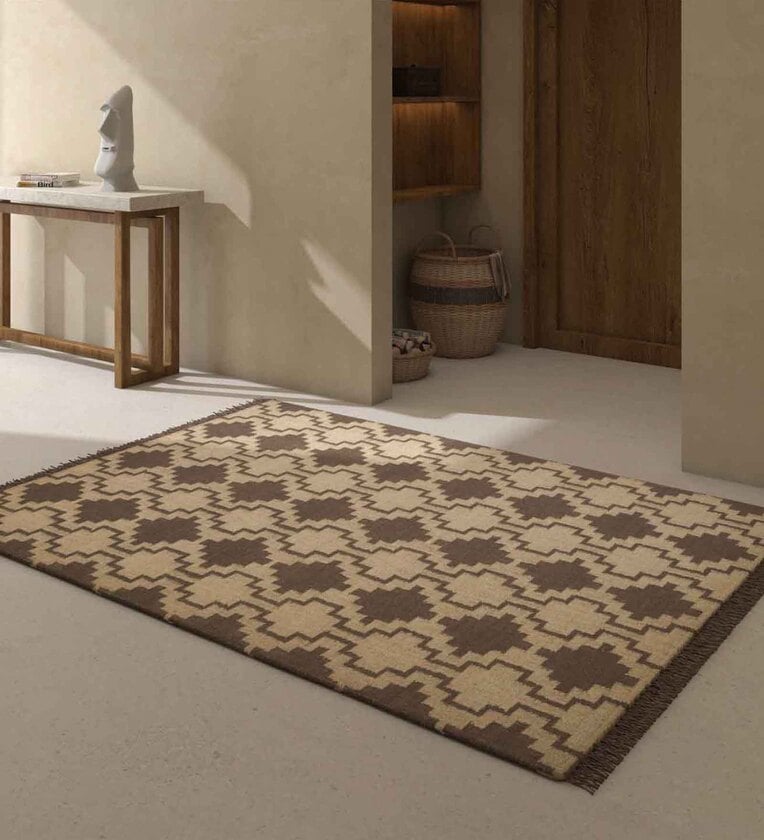 Beige Jute Geometric 60 x 84 Inches Flat Weaves Dhurries