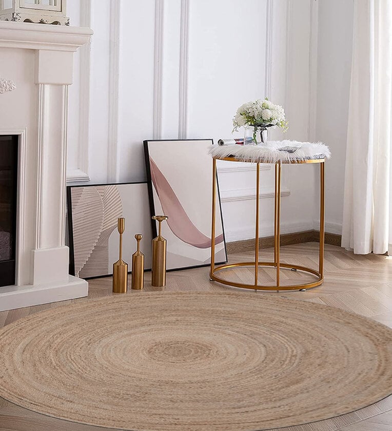 Beige Jute Solid 6 Feet Round Hand Woven Carpet