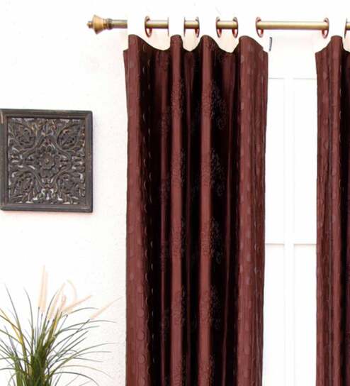Beige Floral Polyester 7 Ft Semisheer Eyelet Door Curtain