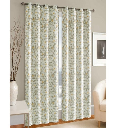 Beige Blackout Polyester 7.5 Feet Eyelet Door Curtains Set of 2