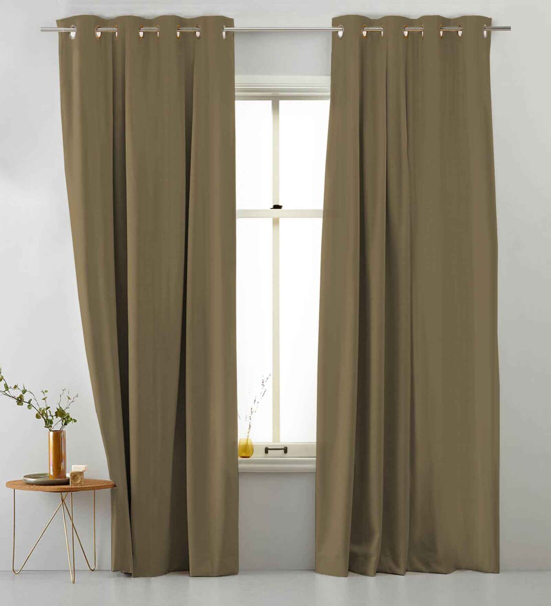 Beige Polyester Solid 9Ft Blackout Eyelet Long Door Curtains (Pack of 2)
