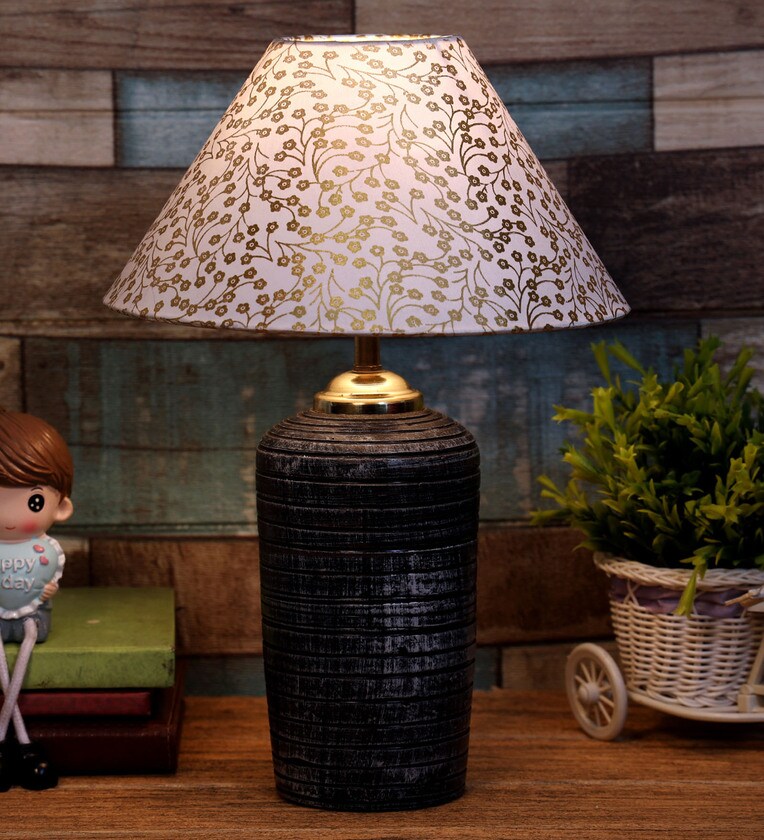 Beige & Gold Shade Table Lamp With Terracotta Base