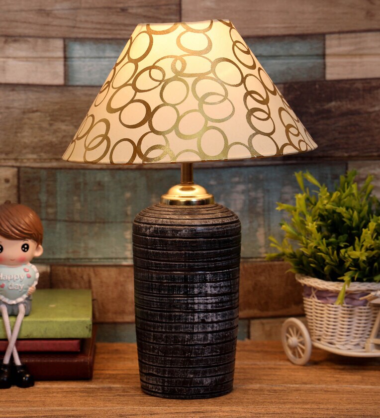Beige & Gold Shade Table Lamp With Terracotta Base