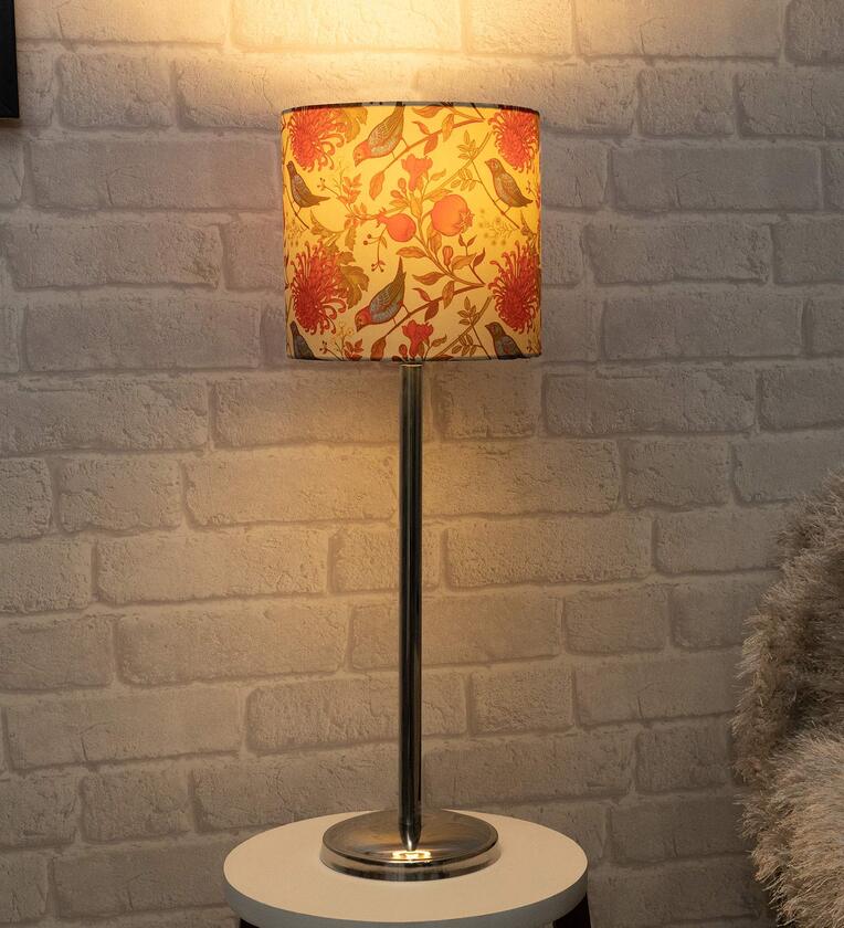 Beige Shade Table Lamp With Stainless Steel Base