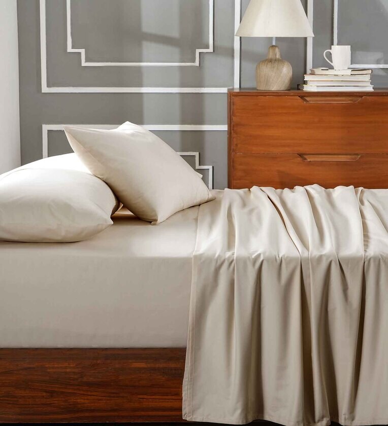 Beige Solid 144 TC 100% Cotton Queen Bedsheet with 2 Pillow Covers