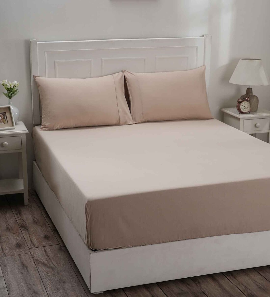 Beige Solid 144 TC 100% Cotton Double Bedsheet with 2 Pillow Covers