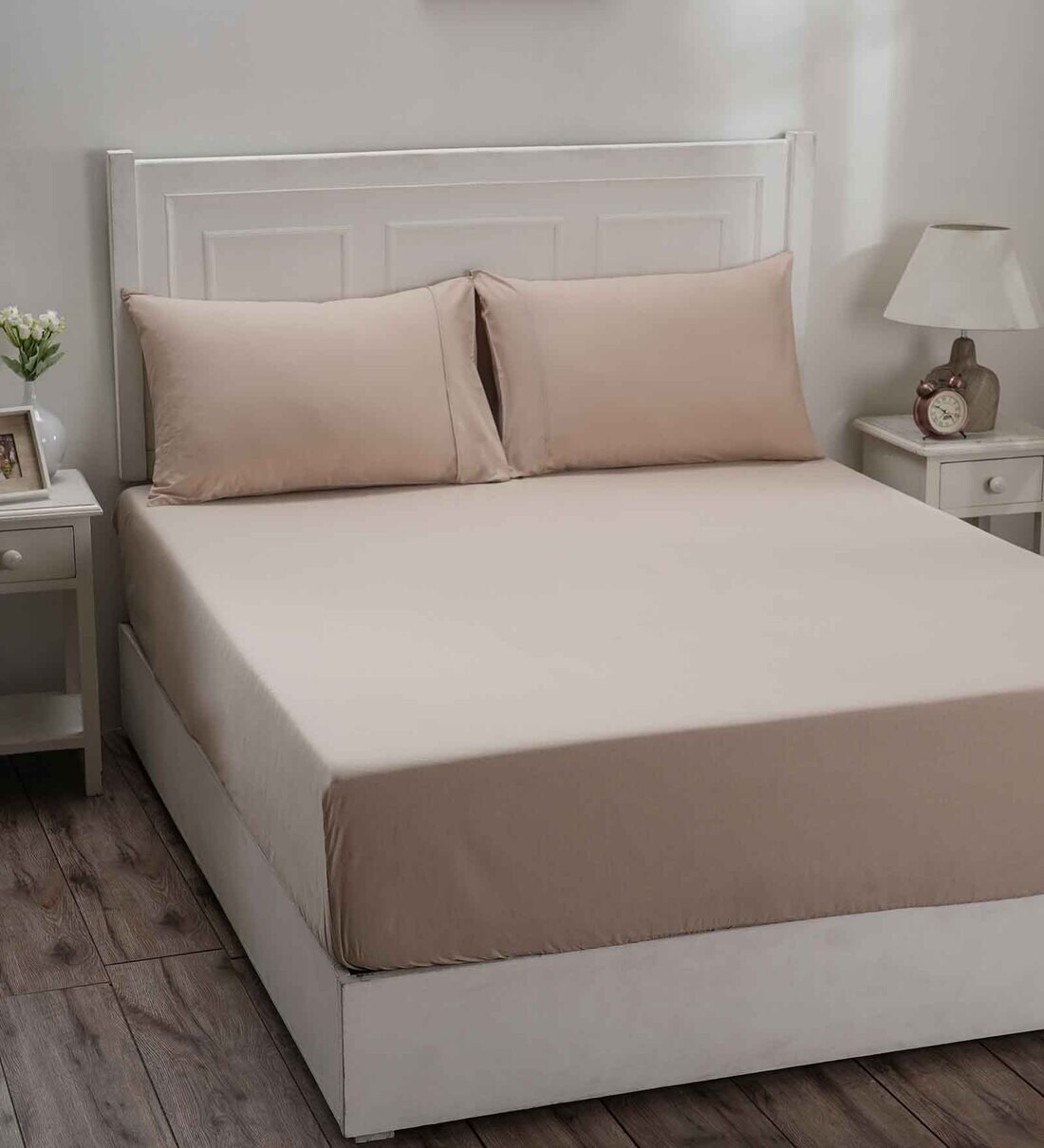 Beige Solid 144 TC 100% Cotton Single Bedsheet with 1 Pillow Cover
