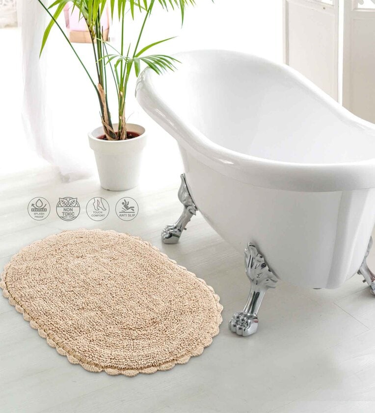 Beige Solid Cotton 24x16 Inches Max Absorbant Bath Mat