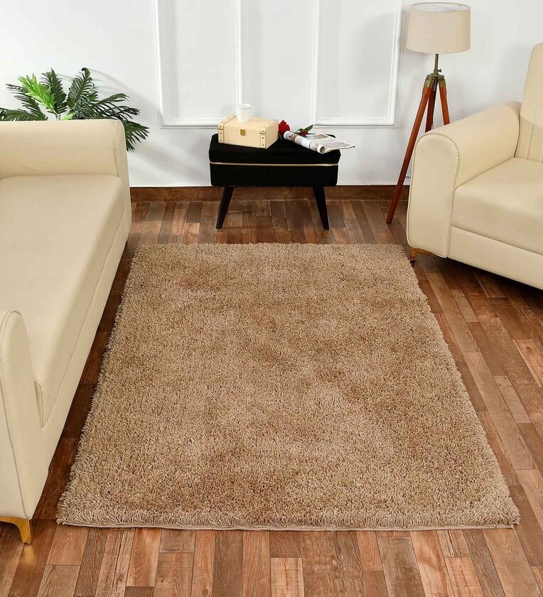 Beige Solid Polyester 5 ft x 7 ft Machine made Carpet