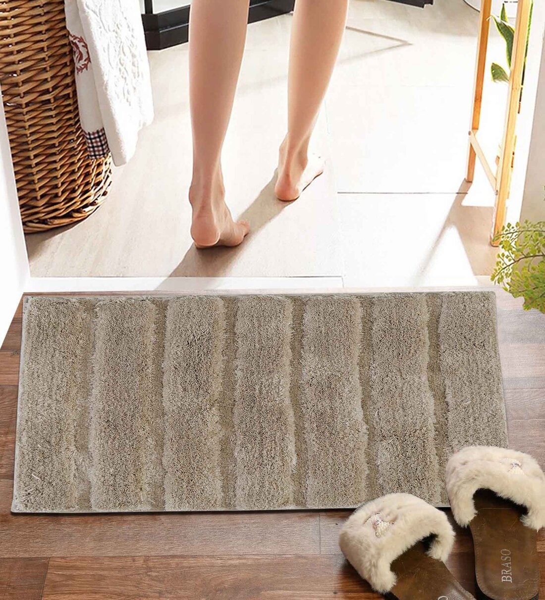 Beige Striped MicroFibre 15x10 Inches Antiskid Bath Mats