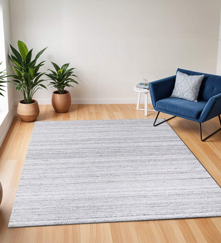 Beige Stripes Pet Yarn 5 ft x 7 ft Hand Woven Carpet