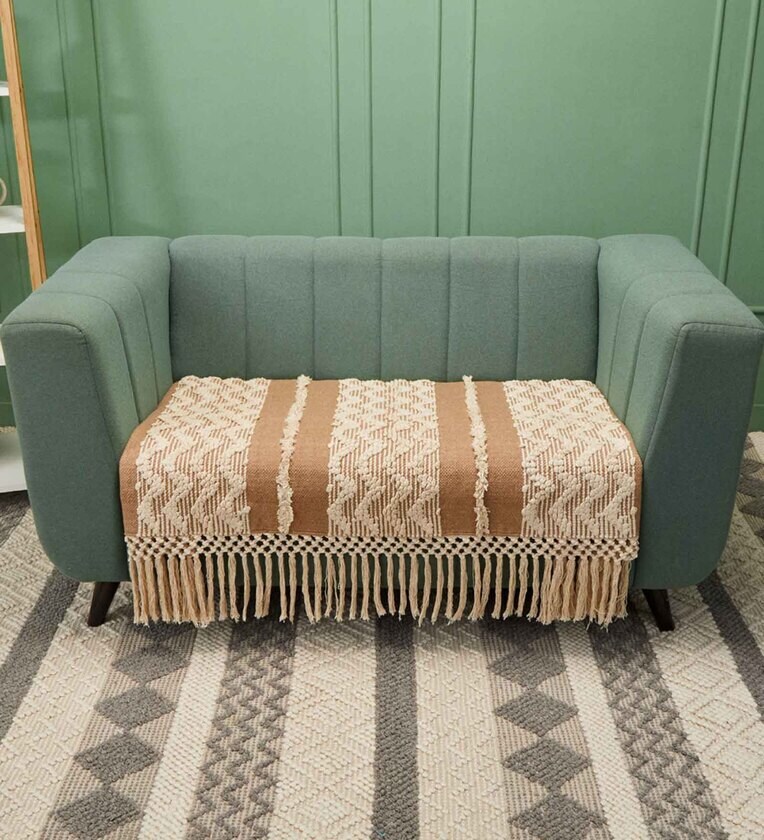 Tassled Brown Woven 3 Seater Sofa Cover With Tassles