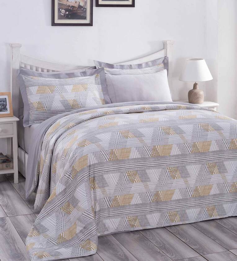 Beige Traditional Cotton Double Bed Duvet Cover With 2 Pillow Covers