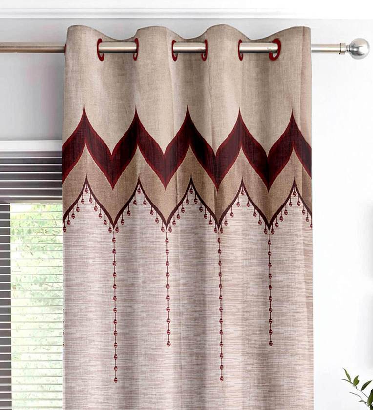 Beige Traditional Jacquard 5 Ft Blackout Eyelet Window Curtain