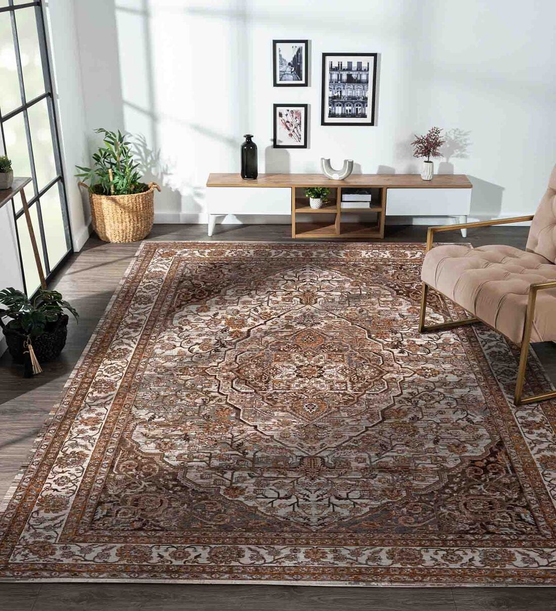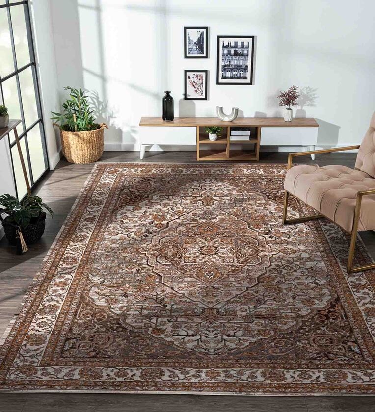 Mid-century flair comes alive! The ornate, Persian rug-inspired design is well suited for bright and subdued settings alike. Combine with wicker accents and a bamboo light fixture to play up this rugs classy look. The elegant style also blends well with mixed furniture.