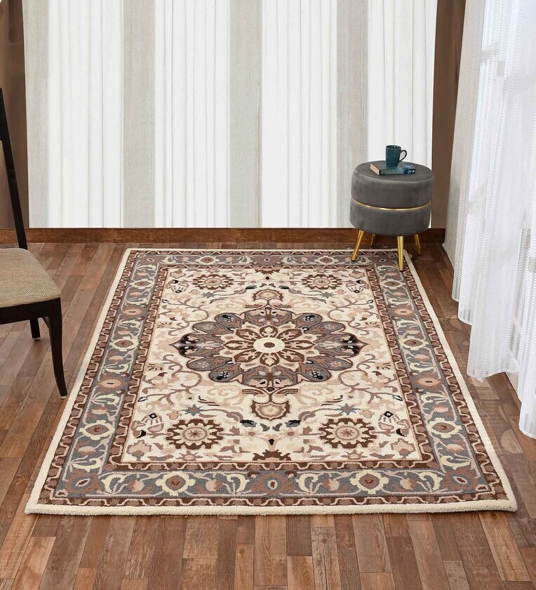 Beige Traditional Wool 5 ft x 7 ft Hand Tufted Carpet