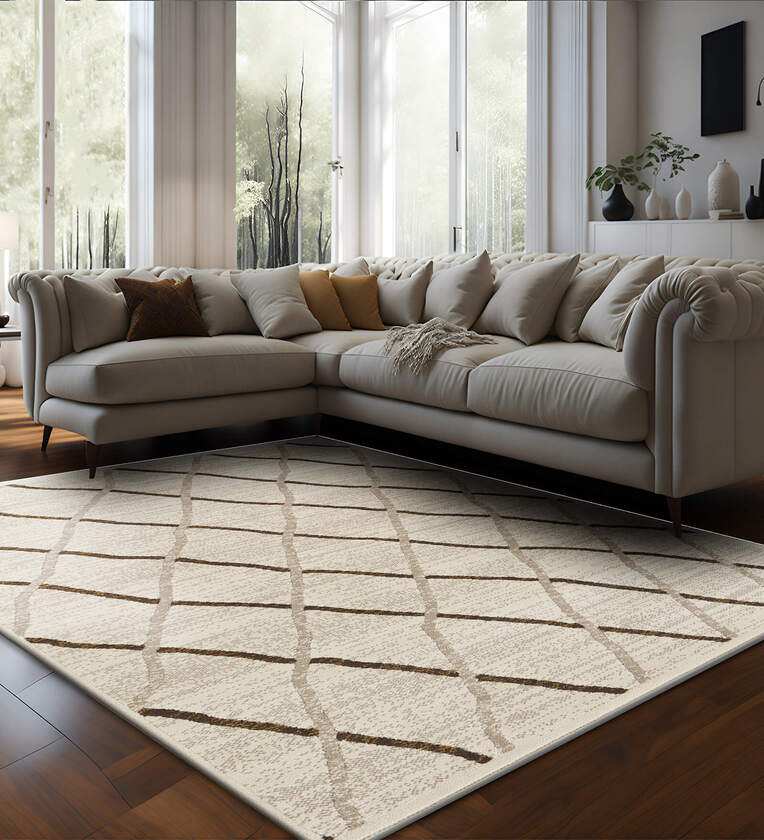 Beige Trellis Polypropylene 5 ft X 7 ft Machine Made Carpet