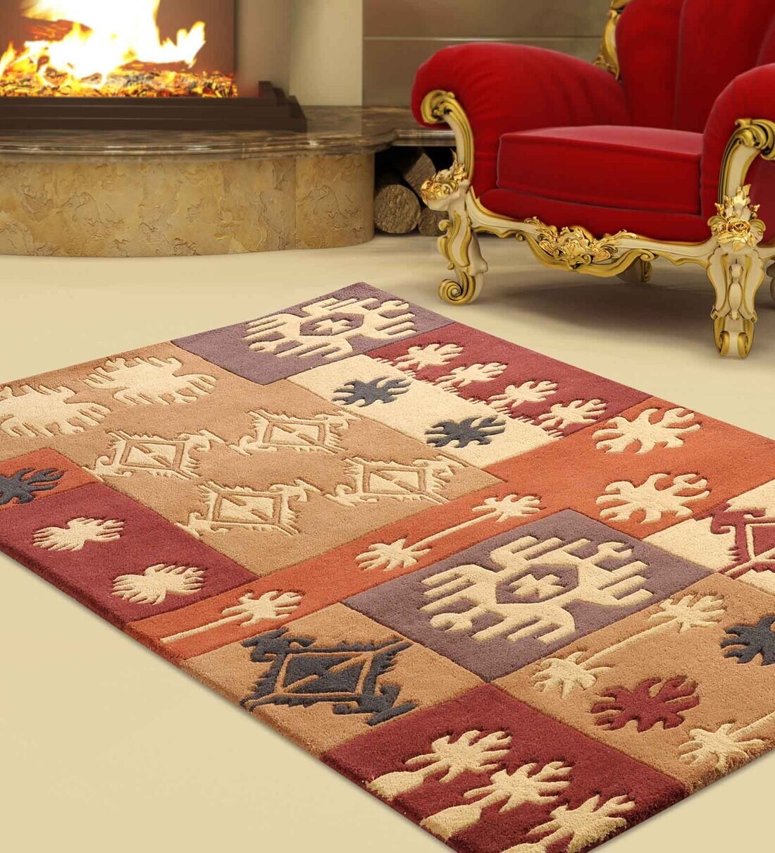 A classic area rug with warm hues of gold and rust will surely add warmth and character to your interiors