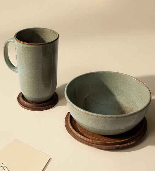 Bein Rustic Multicolour Ceramic (Set of 2) Coffee Mug with Snack Bowl