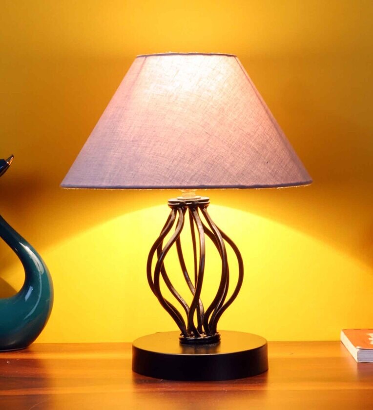 Belgium Grey Cotton Shade Night Lamp With Iron Base