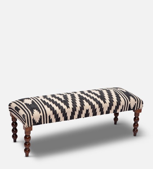 An Eye Catching Look Handcrafted Rug Upholstered Wooden Bench for Your Living Room, Entryway. This Wooden Bench Made by High Quality Wood With Handmade Rug Fabric, Which Developed By Our Local Artisans.